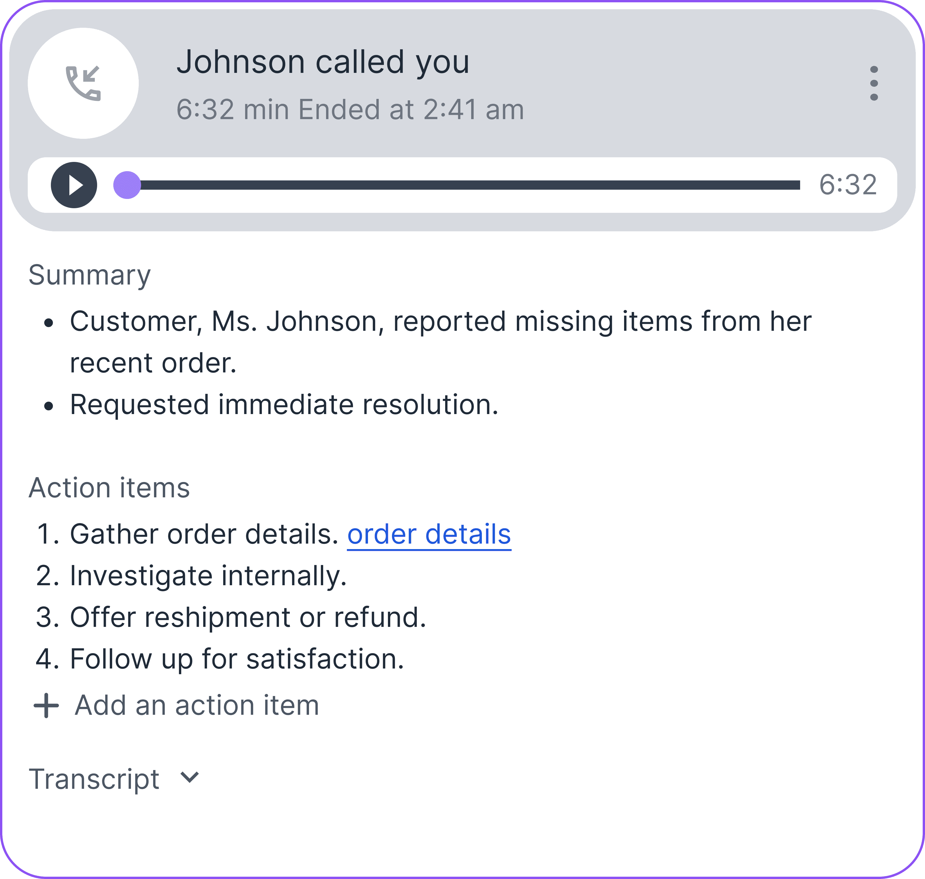 Thoroughly analyze conversations time-stamped call transcripts, making auditing a breeze.